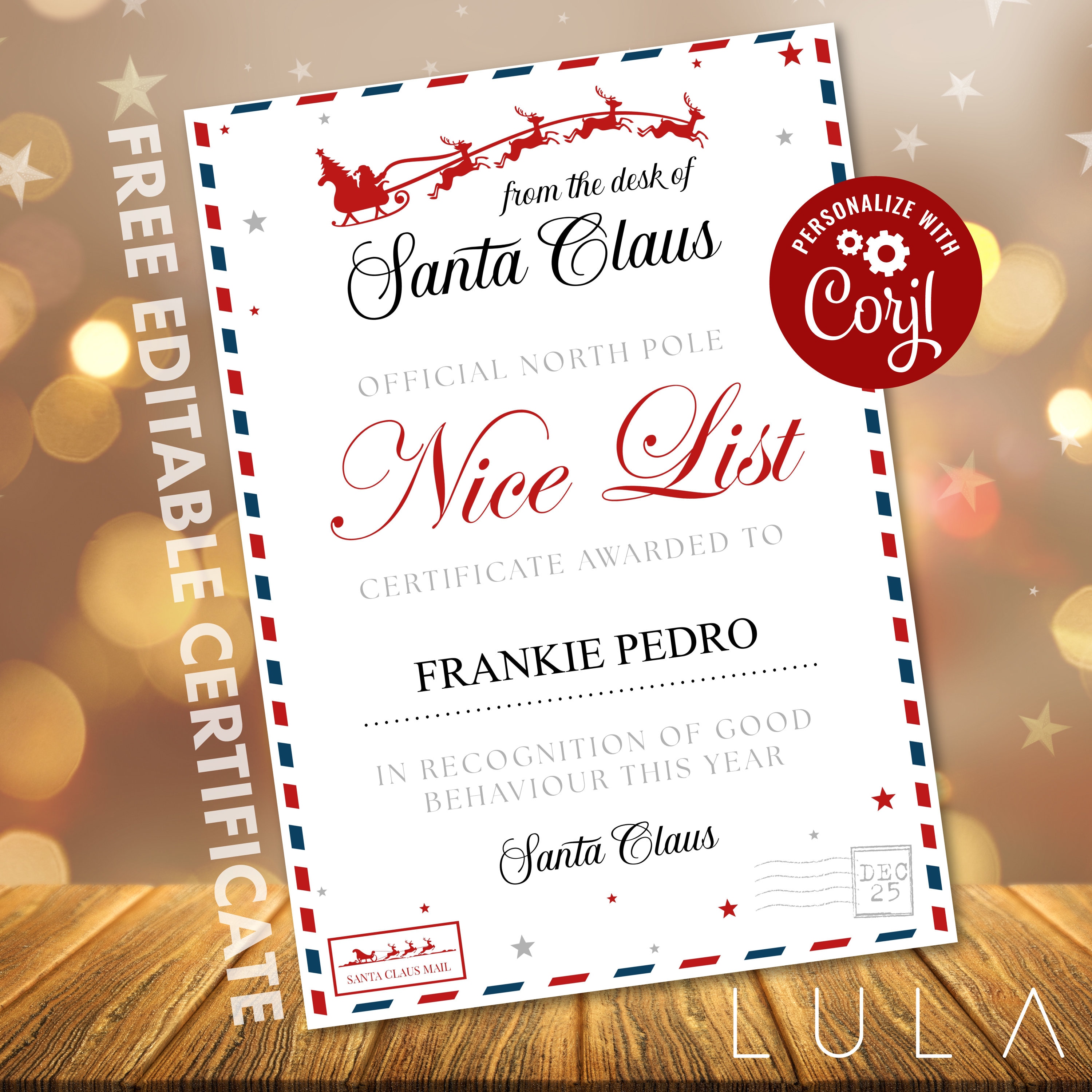 - Nice List Certificate to be edited on Corjl