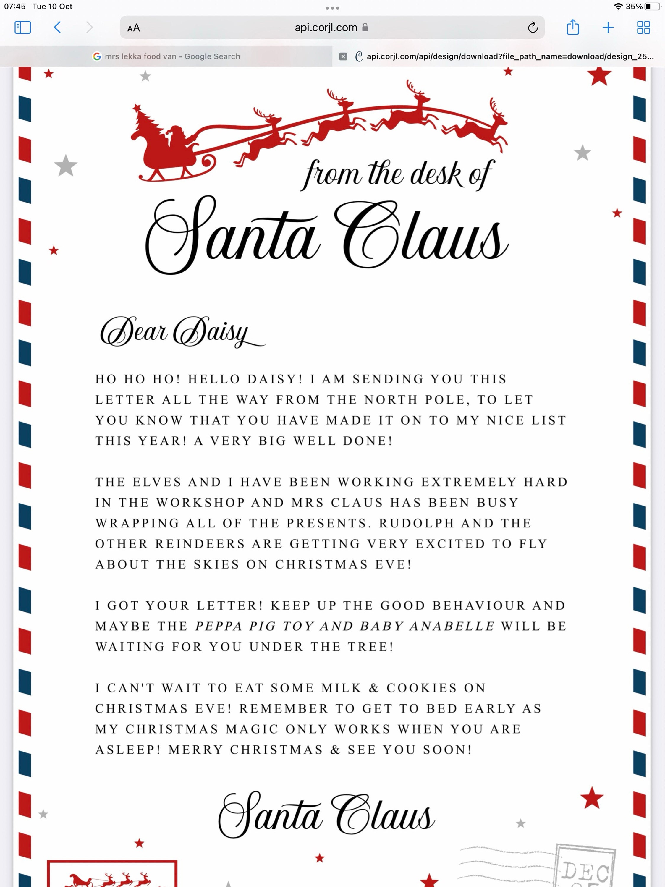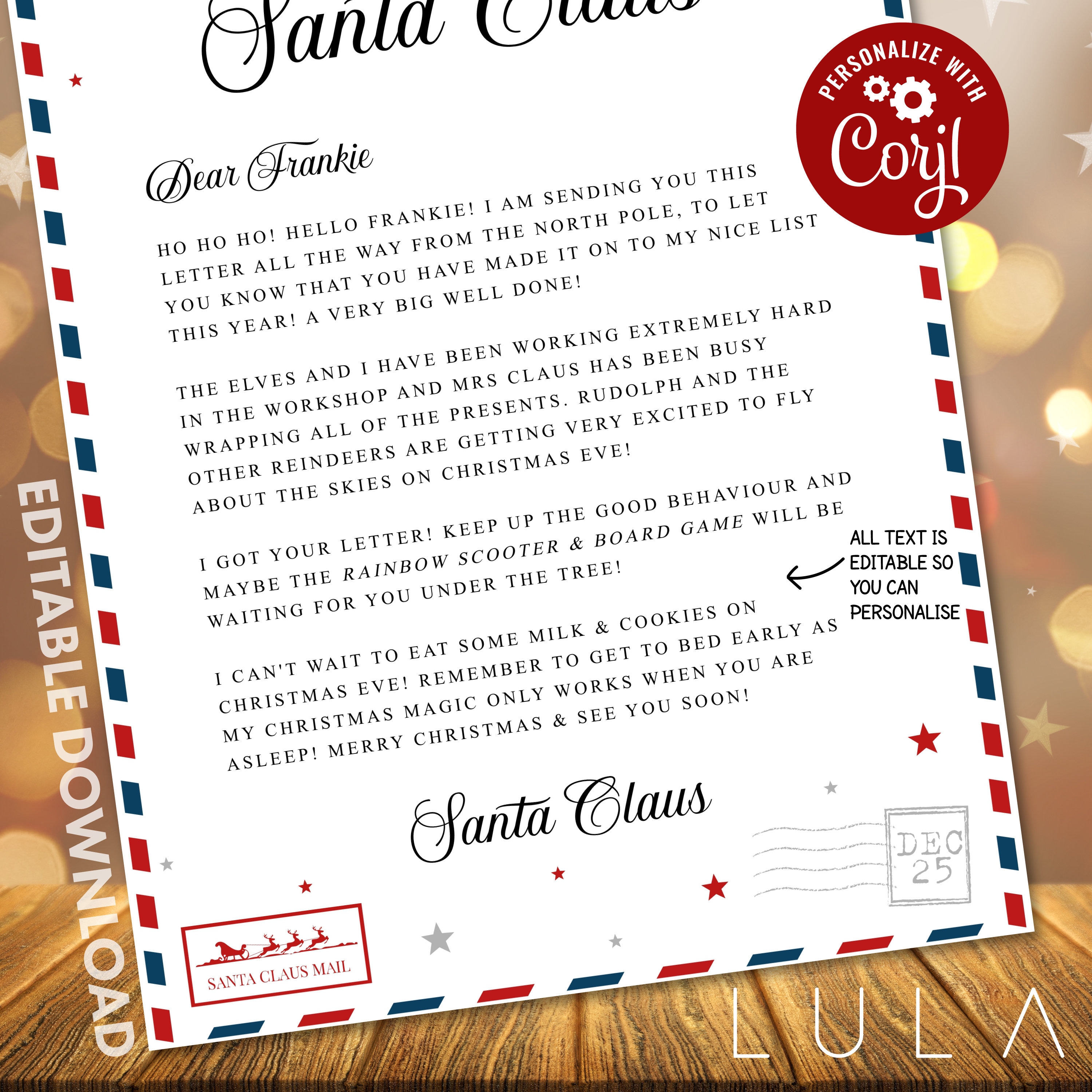 - Letter from Santa to be edited on Corjl