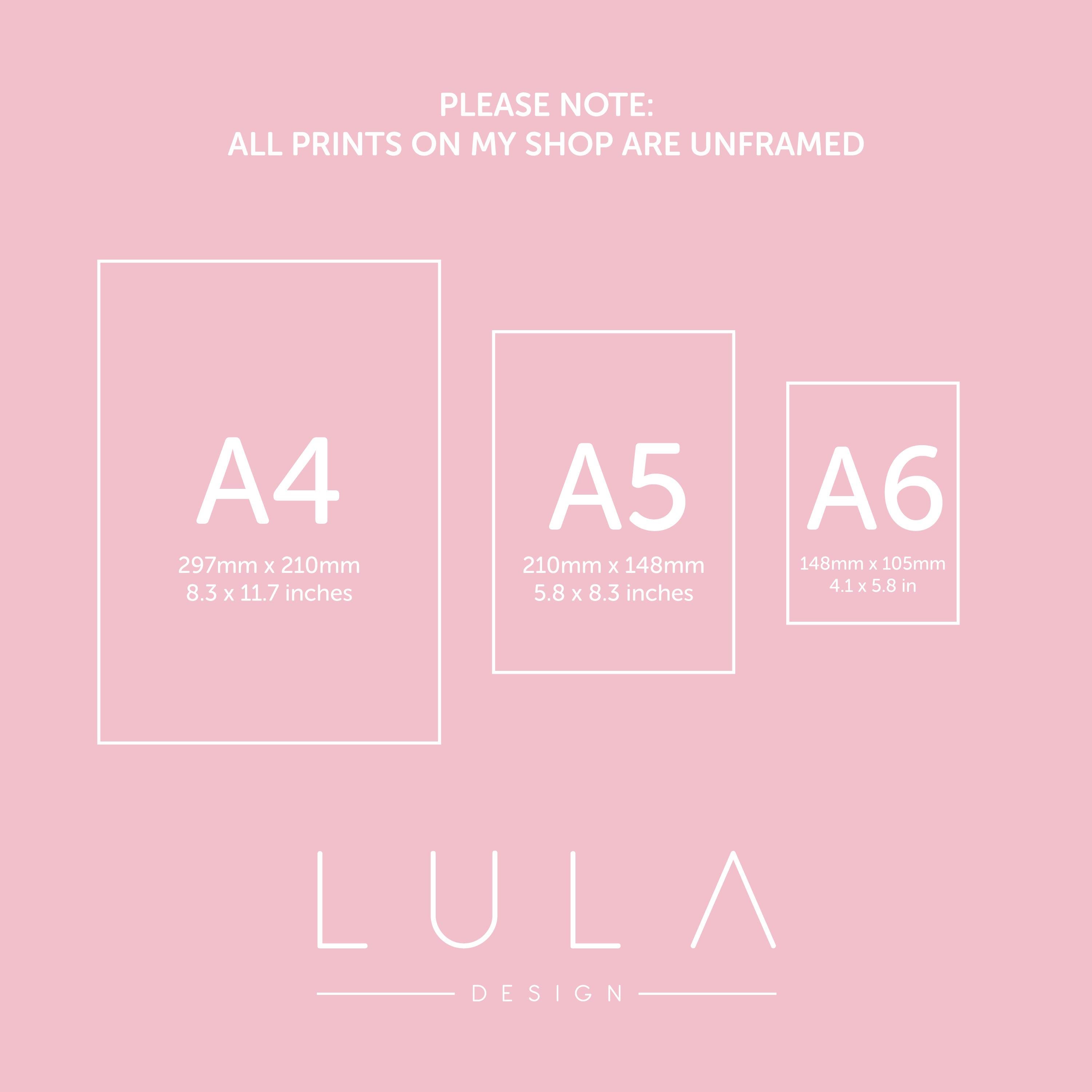 • Due to colour variations on screens, there may be a slight difference in colour from monitor to printing. I always recommend a test print if possible, as I can’t change the colours as they print!