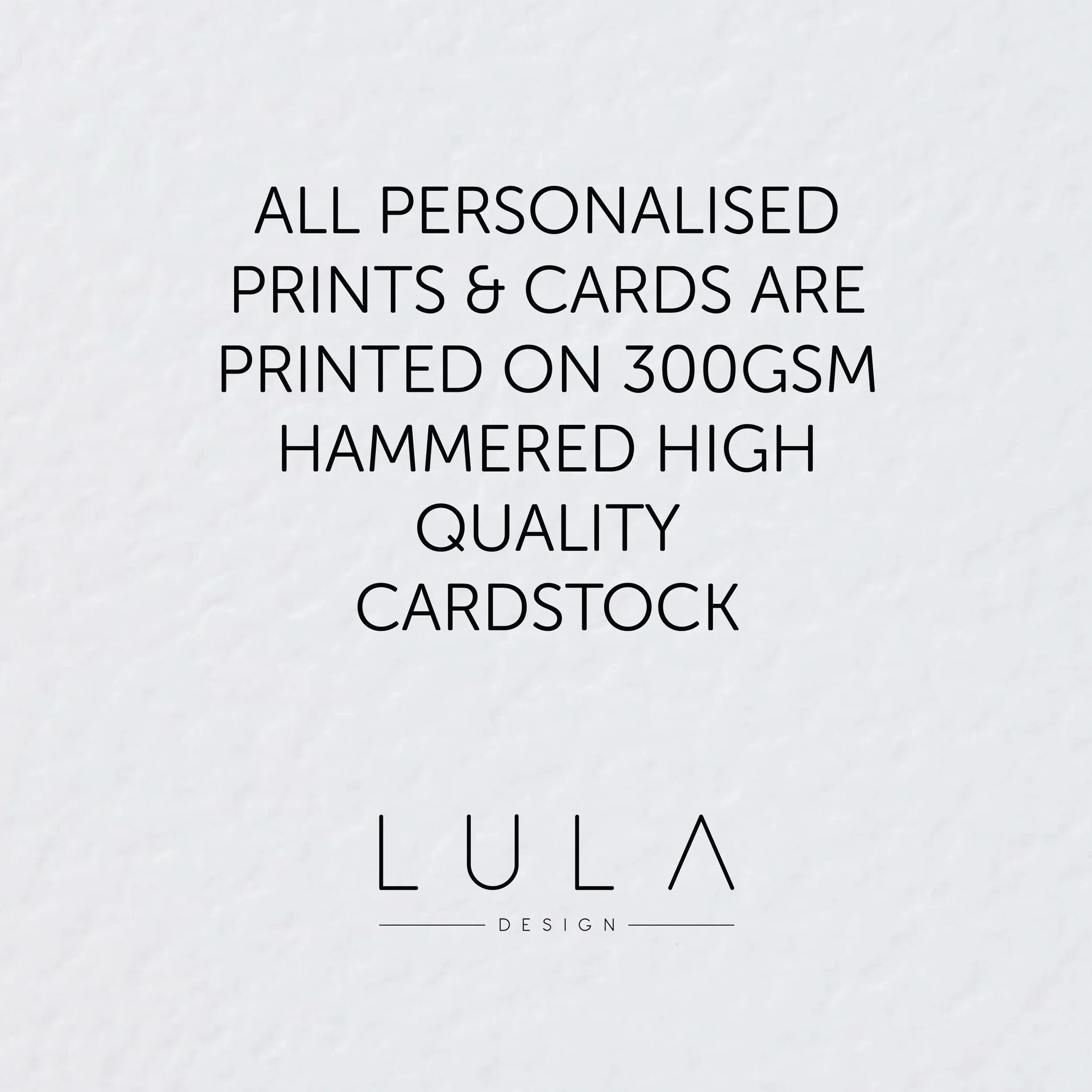 Product will be packaged in a C4 Cello with extra card for protection and will be shipped in a board backed envelope. Available in A4 or A5. Print will be on 300gsm High Quality Hammered Card. A beautiful Typography UNFRAMED Print.