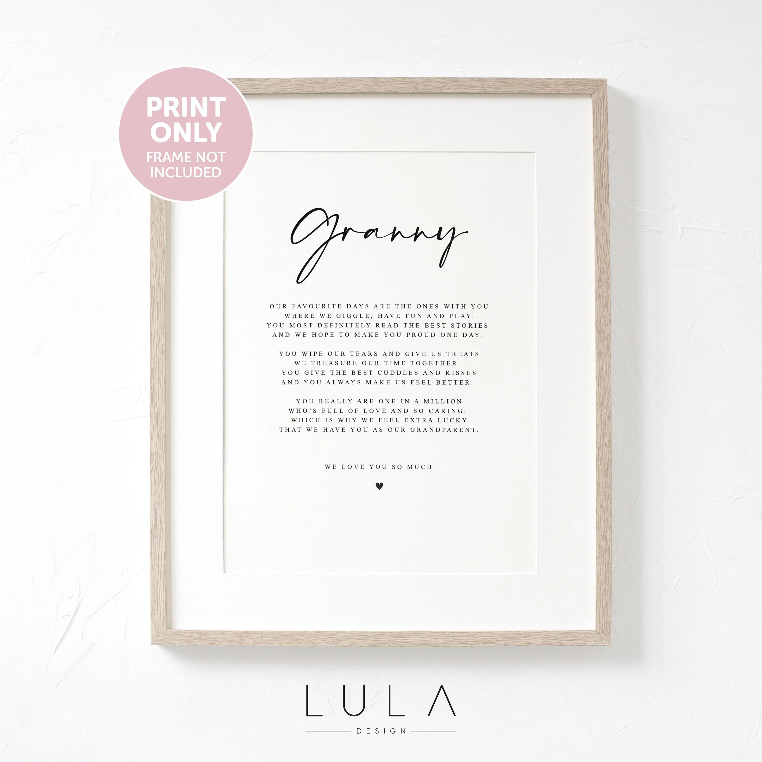 PERSONALISED Grandma Poem in an A4 or A5 Print (Unframed)